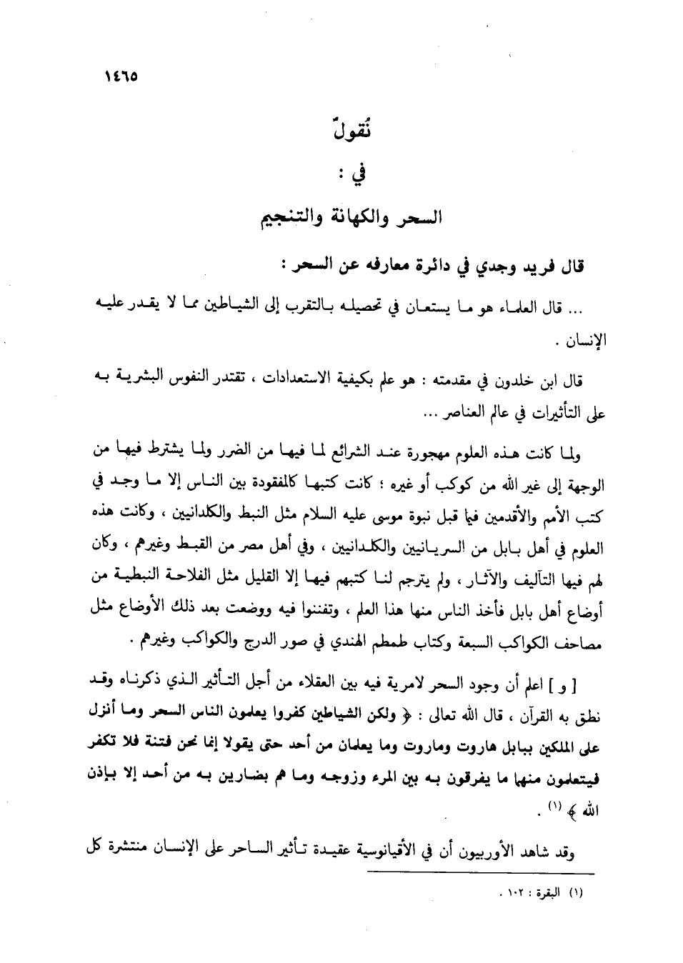قال فريد وجدي في دائرة معارفه عن السحر: