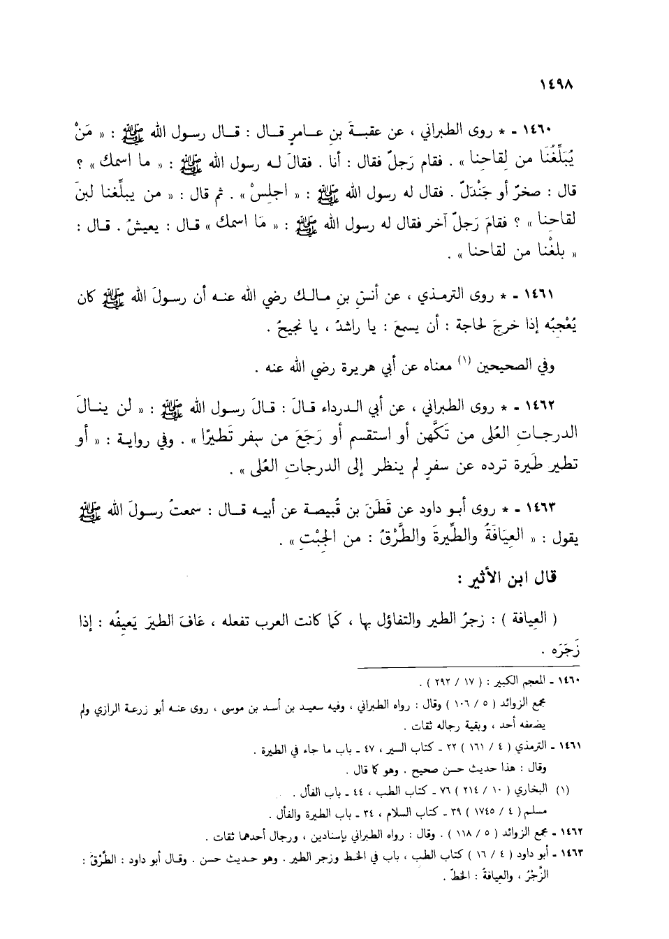 1461 - الترمذي (4/ 161) 22 - كتاب السير، 47 - باب ما جاء في الطيرة.
