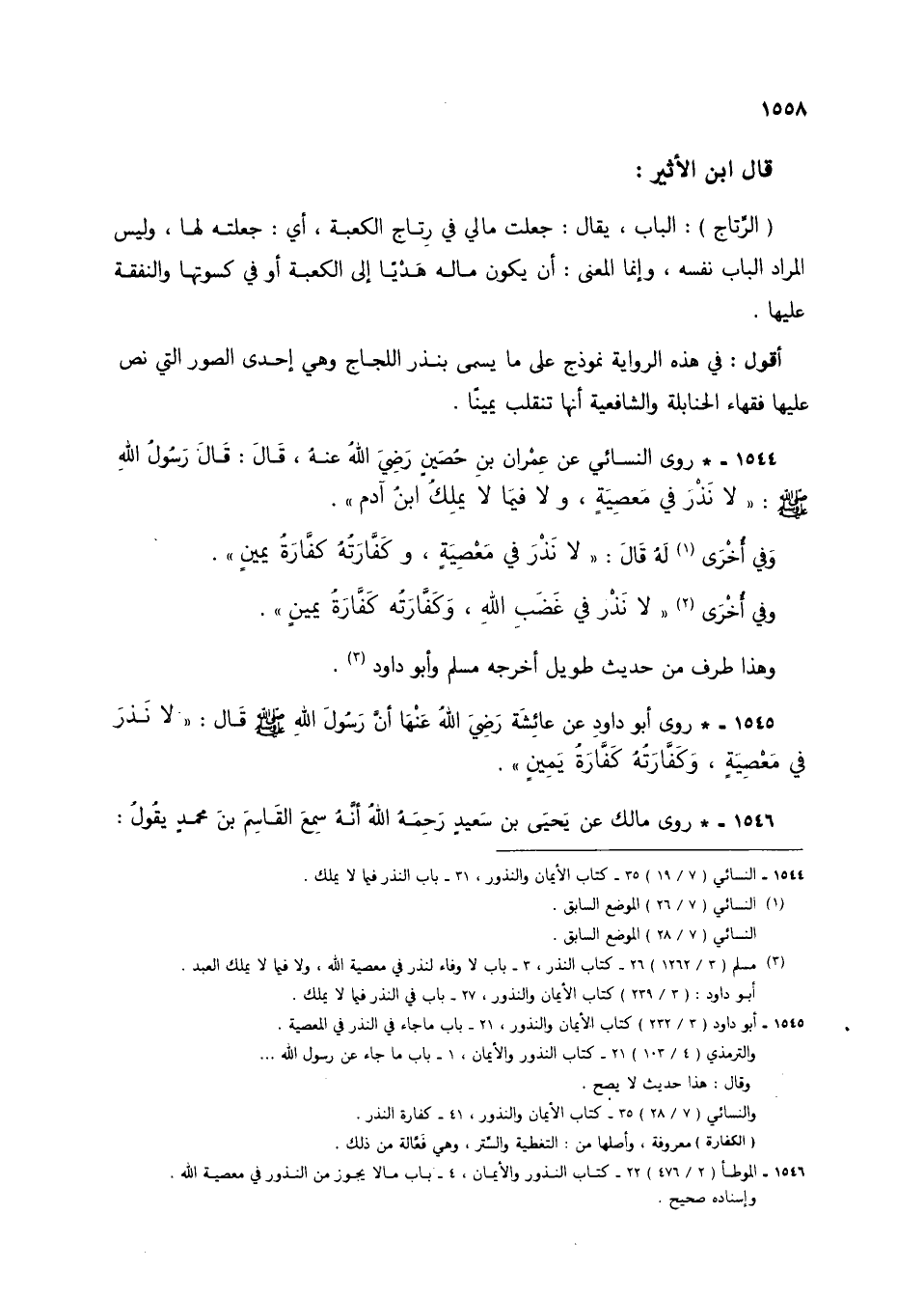 1544 - النسائي (7/ 19) 35 - كتاب الأيمان والنذور، 31 - باب النذر فيما لا يملك.