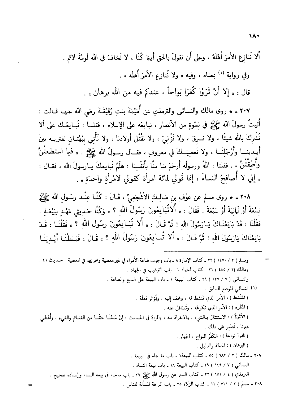 207 - مالك (2/ 982) 55 - كتاب البيعة 1 - باب ما جاء في البيعة.
