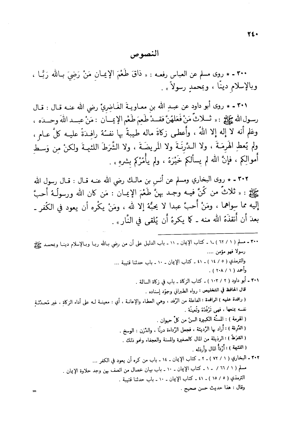 300 - * روى مسلم عن العباس رفعه: "ذاق طعم الإيمان من رضي بالله ربا، وبالإسلام دينًا، وبمحمد رسولاً".