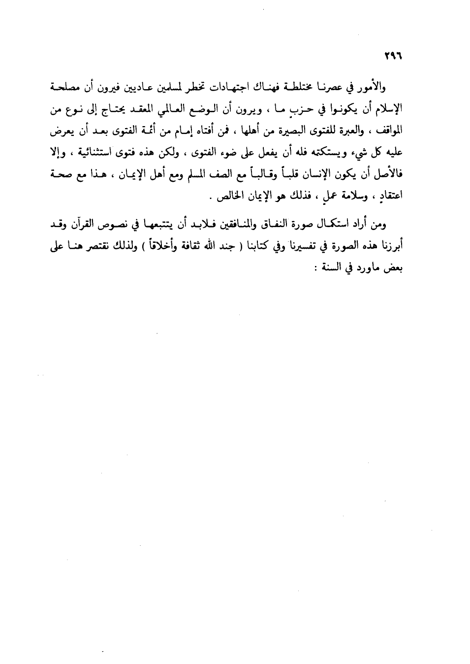 ومن أراد استكمال صورة النفاق والمنافقين فلابد أن يتتبعها في نصوص القرآن وقد أبرزنا هذه الصورة في تفسيرنا وفي كتابنا (جند الله ثقافة وأخلاقًا) ولذلك نقتصر هنا على بعض ما ورد في السنة:
