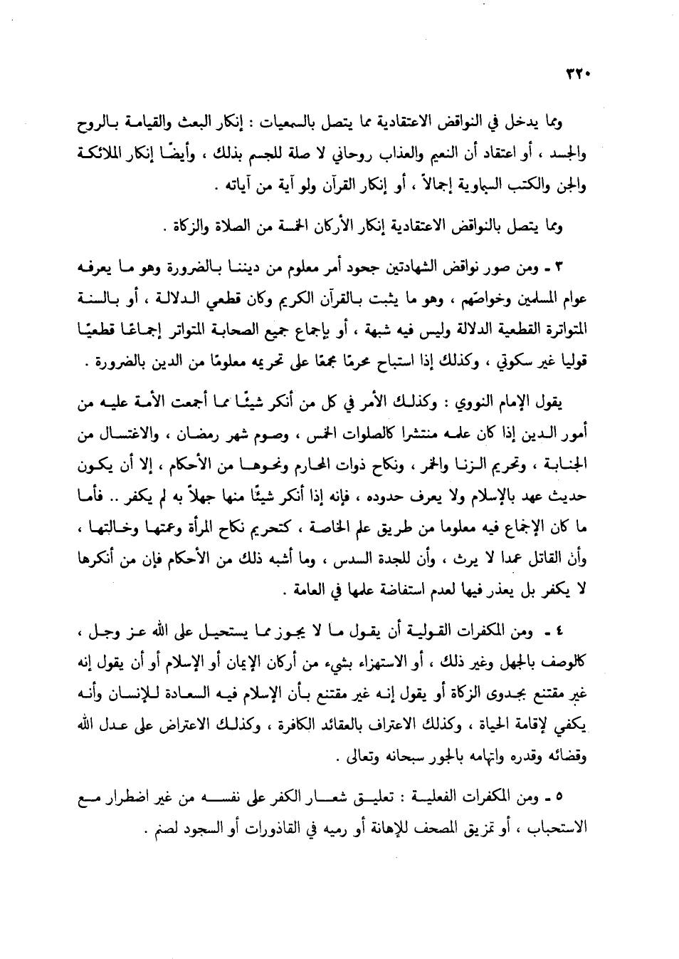 4 - ومن المكفرات القولية أن يقول ما لا يجوز مما يستحيل على الله عز وجل، كالوصف بالجهل وغير ذلك، أو الاستهزاء بشيء من أركان الإيمان أو الإسلام أو أن يقول إنه غير مقتنع بجدوى الزكاة أو يقول إنه غير مقتنع بأن الإسلام فيه السعادة للإنسان وأنه يكفي لإقامة الحياة، وكذلك الاعتراف بالعقائد الكافرة، وكذلك الاعتراض على عدل الله وقضائه وقدره واتهامه بالجور سبحانه وتعالى.