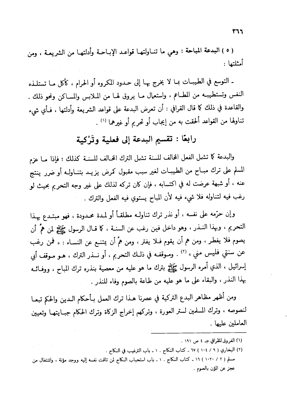 رابعًا: تقسيم البدعة إلى فعلية وتركية: