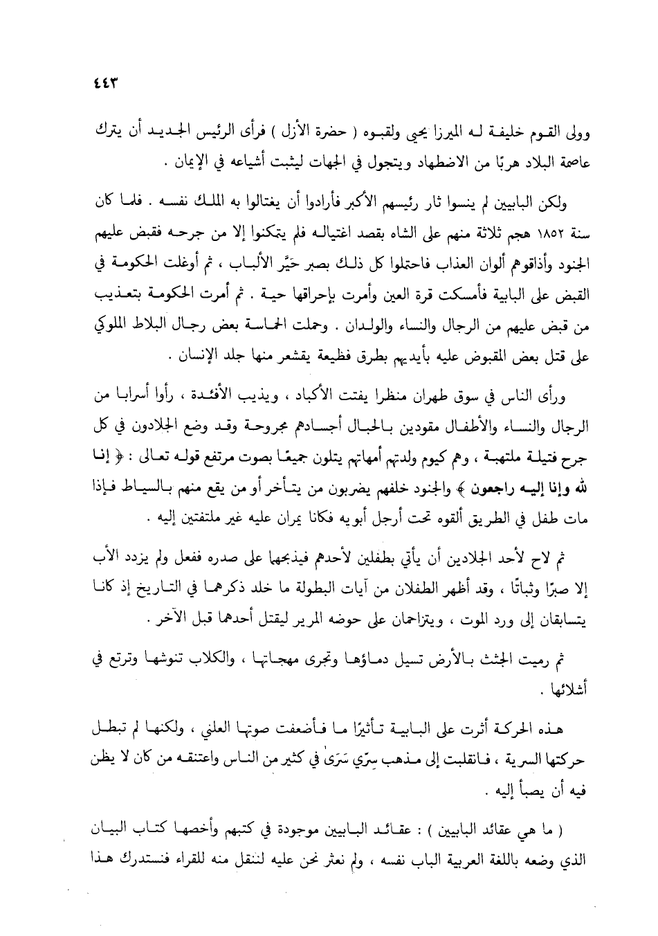 (ما هي عقائد البابيين): عقائد البابيين موجودة في كتبهم وأخصها كتاب البيان الذي وضعه باللغة العربية الباب نفسه، ولم نعثر نحن عليه لننقل منه للقراء فنستدرك هذا