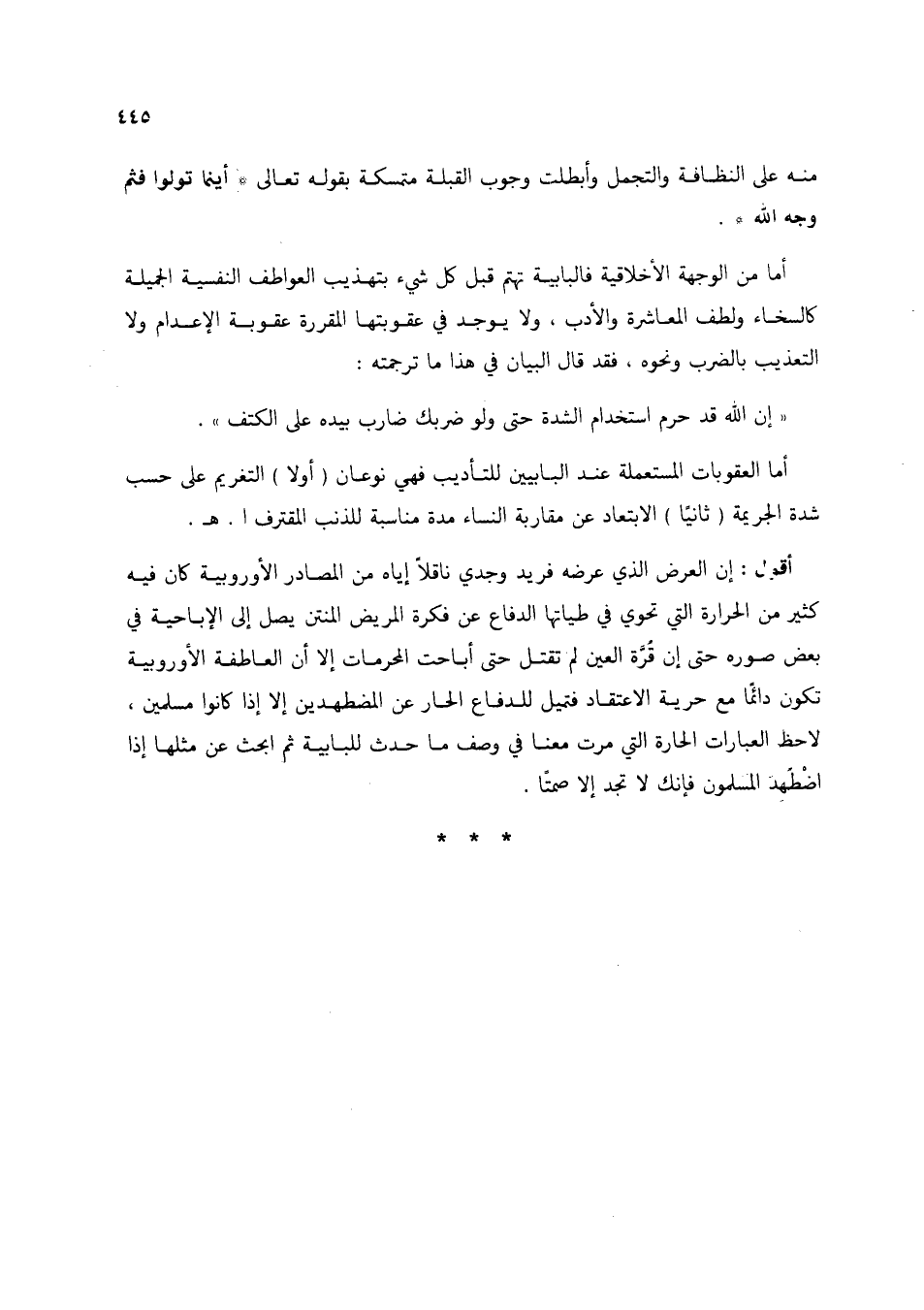 أقول: إن العرض الذي عرضه فريد وجدي ناقلًا إياه من المصادر الأوروبية كان فيه كثير من الحرارة التي تحوي في طياتها الدفاع عن فكرة المريض المنتن يصل إلى الإباحية في بعض صوره حتى إن قرة العين لم تقتل حتى أباحت المحرمات إلا أن العاطفة الأوروبية تكون دائمًا مع حرية الاعتقاد فتميل للدفاع الحار عن المضطهدين إلا إذا كانوا مسلمين، لاحظ العبارات الحارة التي مرت معنا في وصف ما حدث للبابية ثم ابحث عن مثلها إذا اضطهد المسلمون فإنك لا تجد إلا صمتًا.