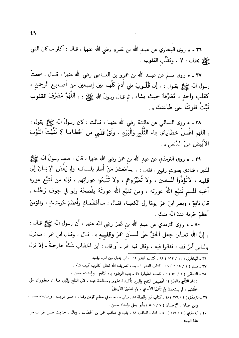 36 - * روى البخاري عن عبد الله بن عمرو رضي الله عنهما، قال: أكثر ما كان النبي صلى الله عليه وسلم: لا، ومقلب القلوب.