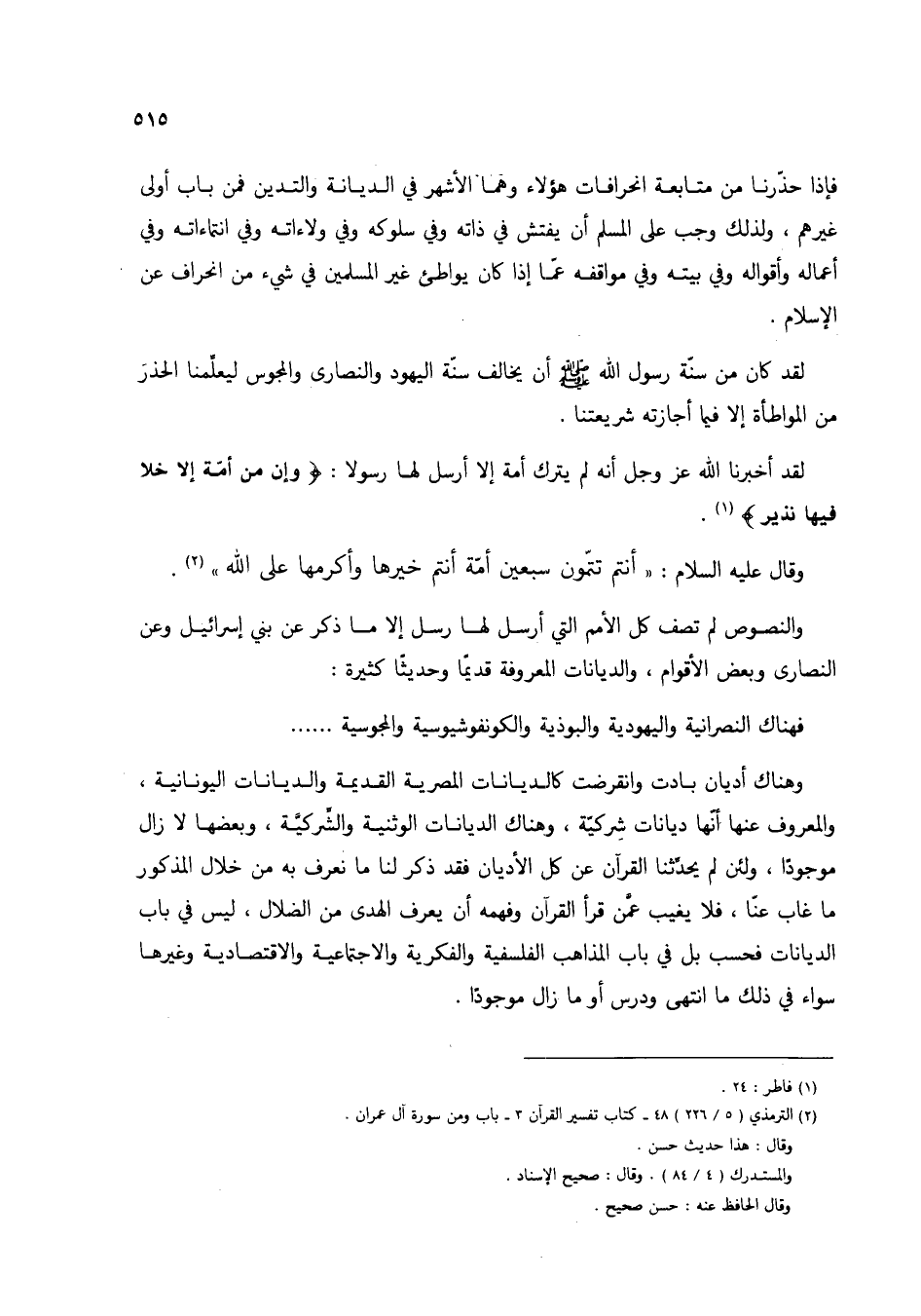 والنصوص لم تصف كل الأمم التي أرسل لها رسل إلا ما ذكر عن بني إسرائيل وعن النصارى وبعض الأقوام، والديانات المعروفة قديماً وحديثاً كثيرة: