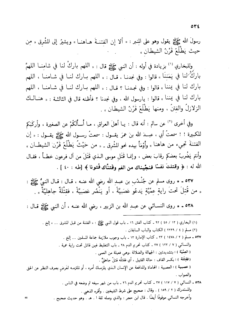 538 - * روى النسائي عن عبد الله بن الزبير، رضي الله عنه، أن النبي صلى الله عليه وسلم قال: