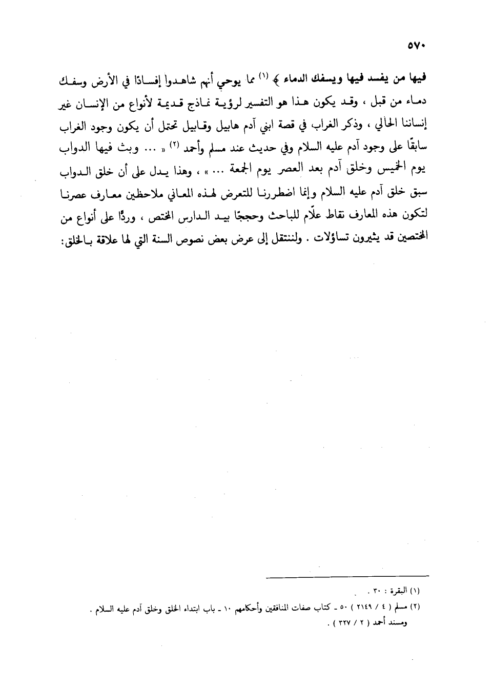 (2) مسلم (4/ 2149) 50 - كتاب صفات المنافقين وأحكامهم 10 - باب ابتداء الخلق وخلق آدم عليه السلام. ومسند أحمد (2/ 327).