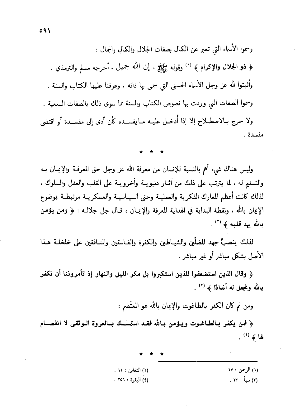{ذُو الْجَلَالِ وَالْإِكْرَامِ} (1) وقوله صلى الله عليه وسلم "إن الله جميل" أخرجه مسلم والترمذي.