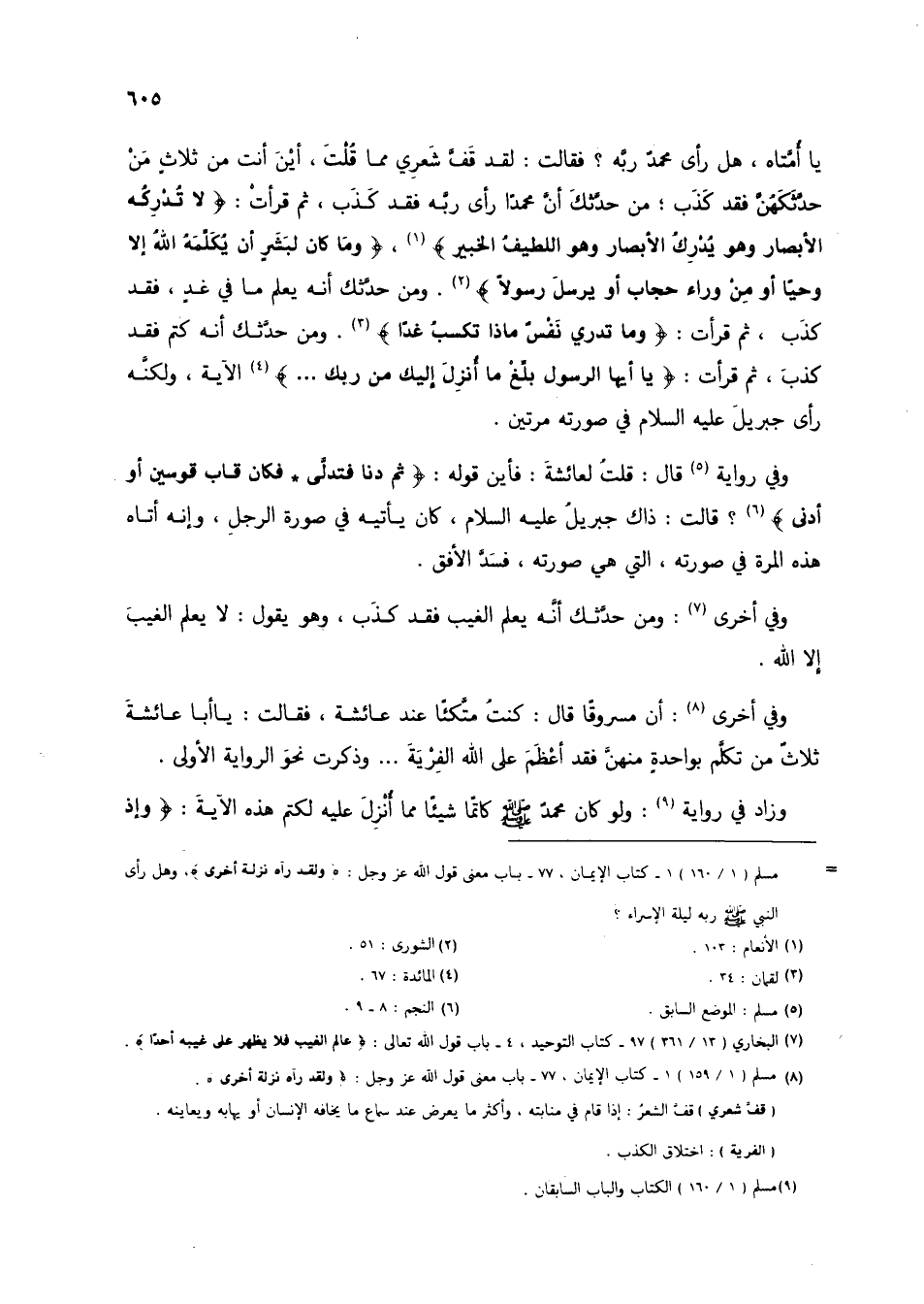 (8) مسلم (1/ 159) 1 - كتاب الإيمان، 77 - باب معنى قول الله عز وجل: {وَلَقَدْ رَآهُ نَزْلَةً أُخْرَى}.