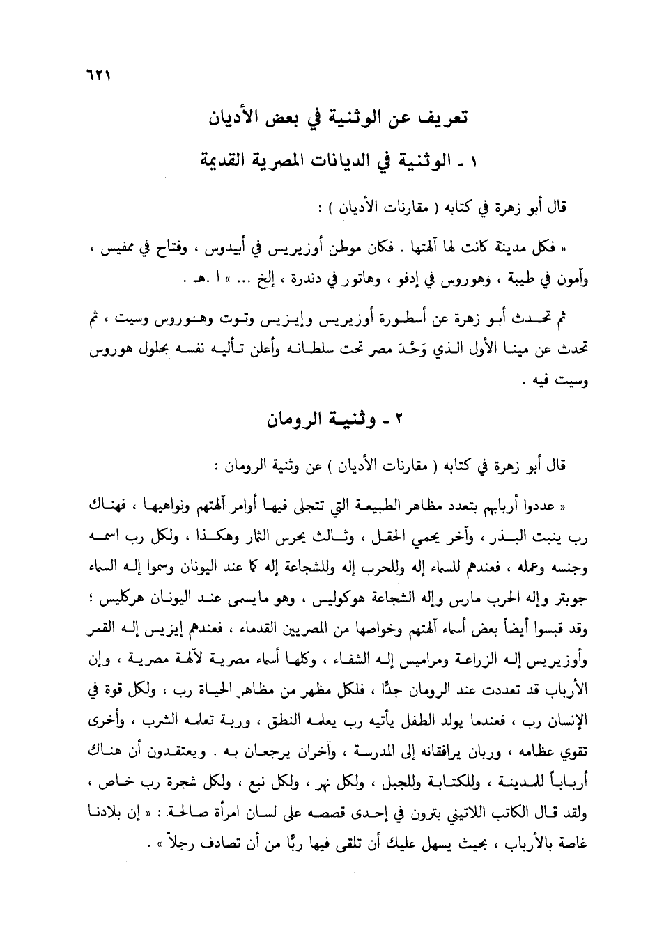 قال أبو زهرة في كتابه (مقارنات الأديان) عن وثنية الرومان: