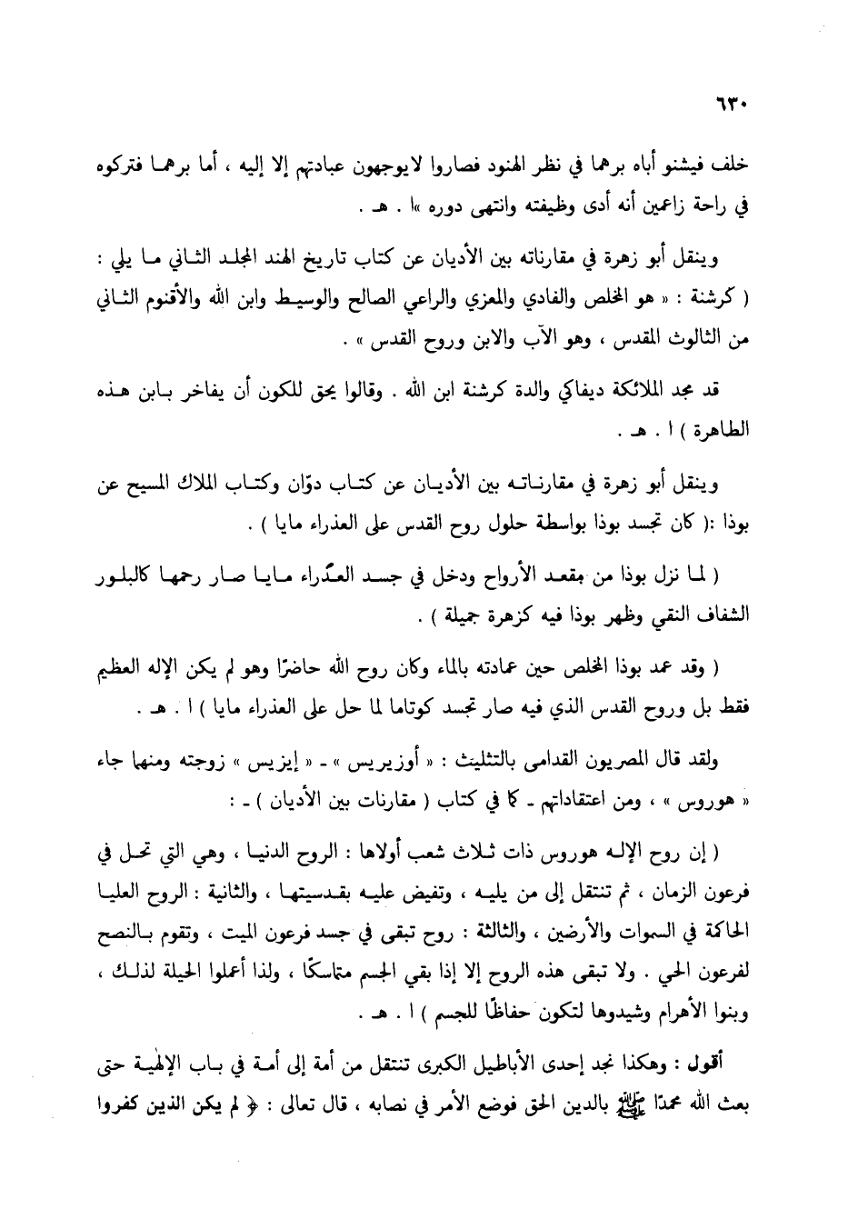 أقول: وهكذا نجد إحدى الأباطيل الكبرى تنتقل من أمة إلى أمة في باب الإلهية حتى بعث الله محمداً صلى الله عليه وسلم بالدين الحق فوضع الأمر في نصابه، قال تعالى: {لَمْ يَكُنِ الَّذِينَ كَفَرُوا