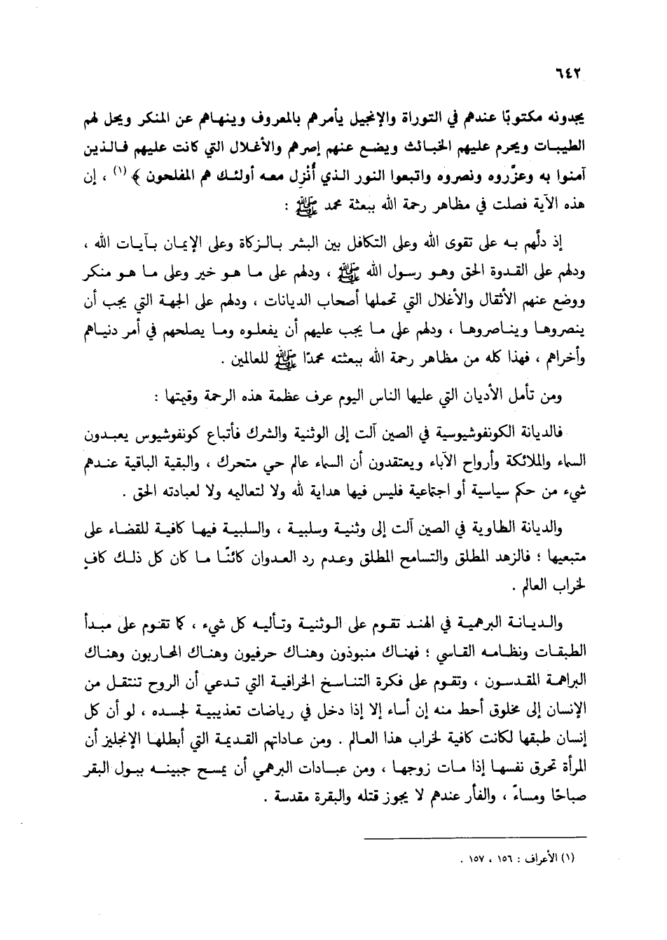 ومن تأمل الأديان التي عليها الناس اليوم عرف عظمة هذه الرحمة وقيمتها: