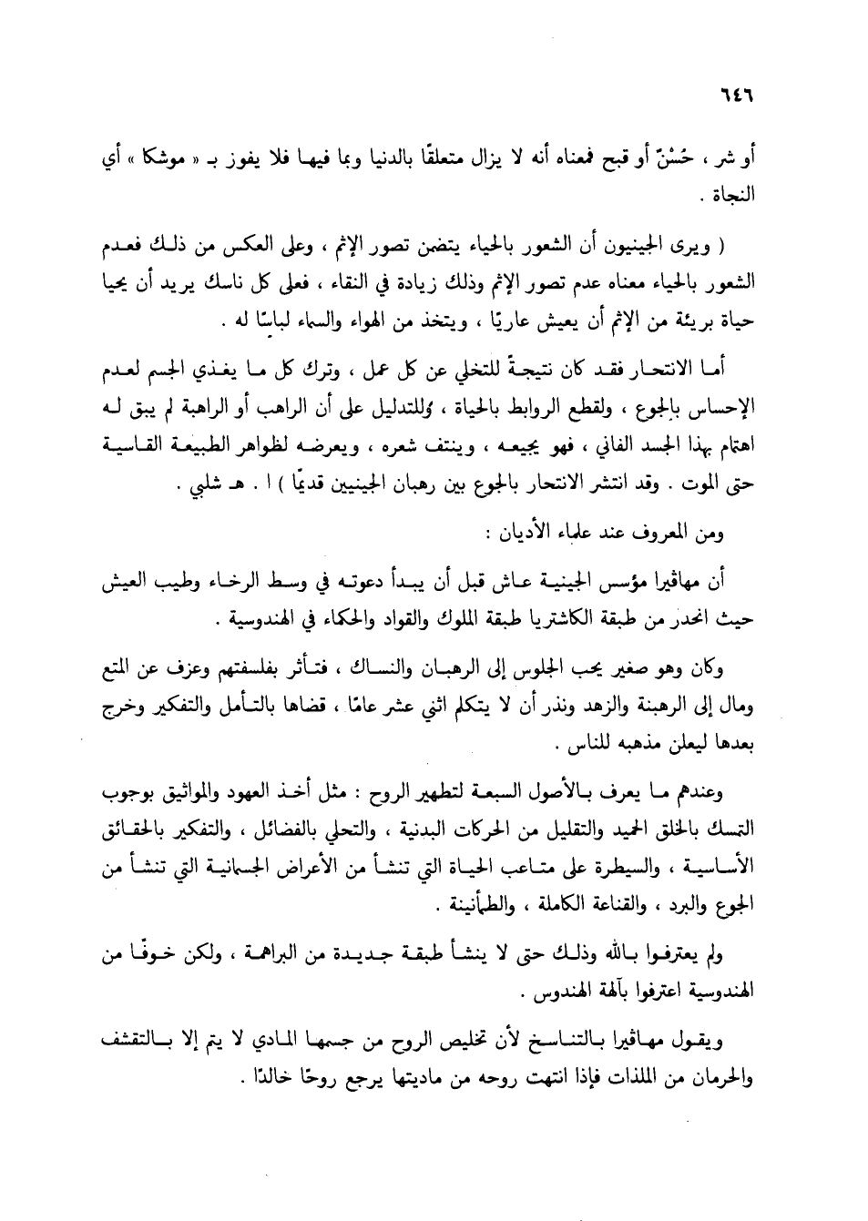 (ويرى الجينيون أن الشعور بالحياء يتضمن تصور الإثم، وعلى العكس من ذلك فعدم الشعور بالحياء معناه عدم تصور الإثم وذلك زيادة في النقاء، فعلى كل ناسك يريد أن يحيا حياة بريئة من الإثم أن يعيش عارياً، ويتخذ من الهواء والسماء لباسا له.