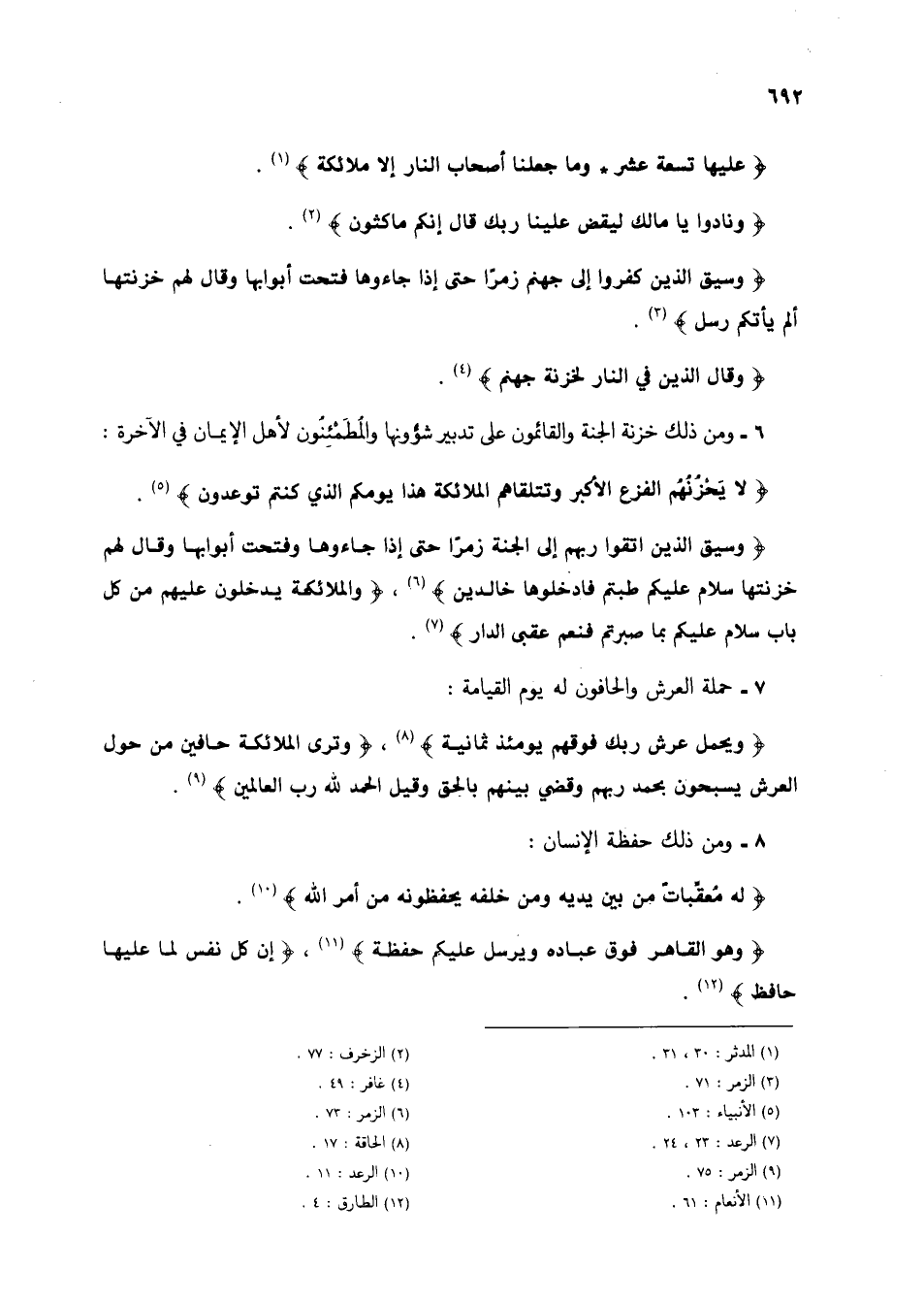 {وَهُوَ الْقَاهِرُ فَوْقَ عِبَادِهِ وَيُرْسِلُ عَلَيْكُمْ حَفَظَةً} (11)، {إِنْ كُلُّ نَفْسٍ لَمَّا عَلَيْهَا حَافِظٌ} (12).