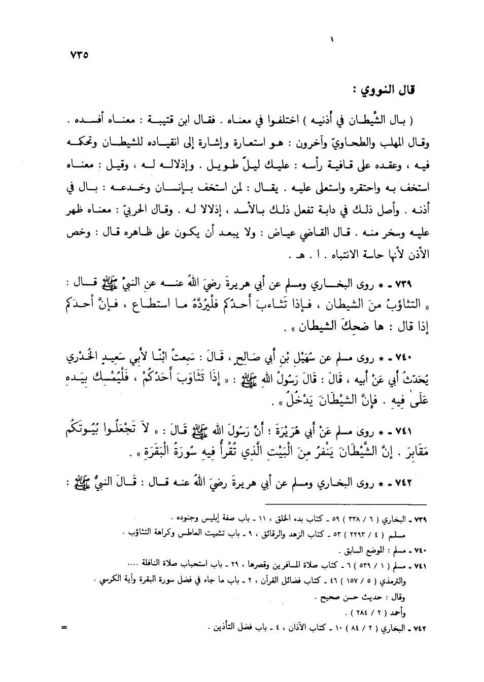 739 - البخاري (6/ 338) 59 - كتاب بدء الخلق، 11 - باب صفة إبليس وجنوده.