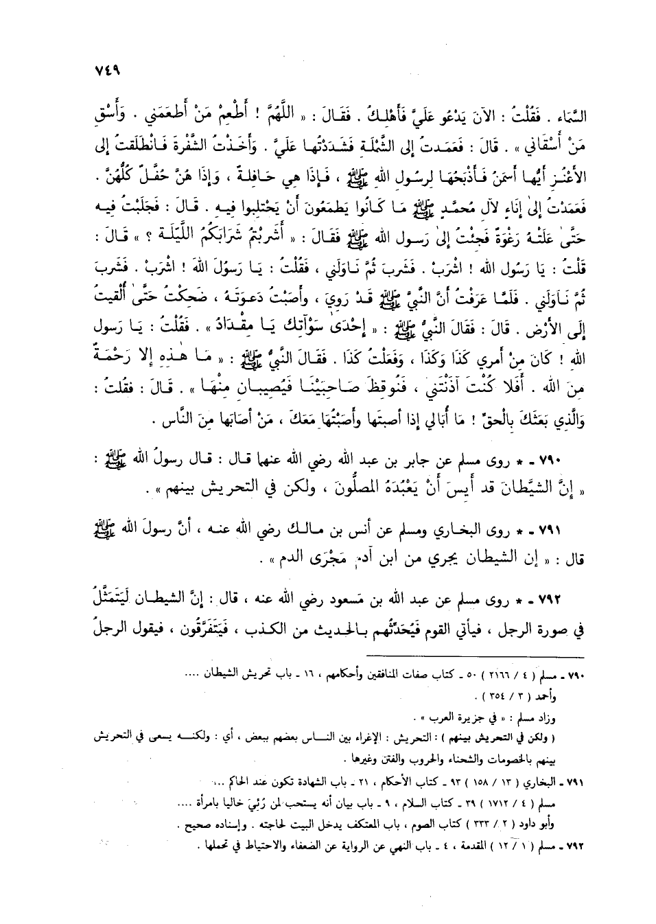 791 - * روى البخاري ومسلم عن أنس بن مالك رضي الله عنه، أن رسول الله صلى الله عليه وسلم قال: "إن الشيطان يجري من ابن آدم مجرى الدم".