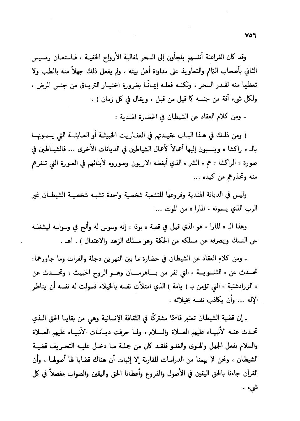 ومن كلام العقاد عن الشيطان في الحضارة الهندية: