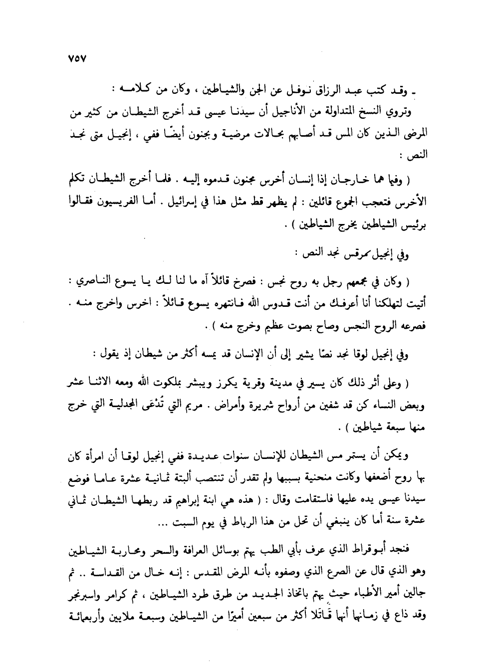 - وقد كتب عبد الرزاق نوف عن الجن والشياطين، وكان من كلامه: