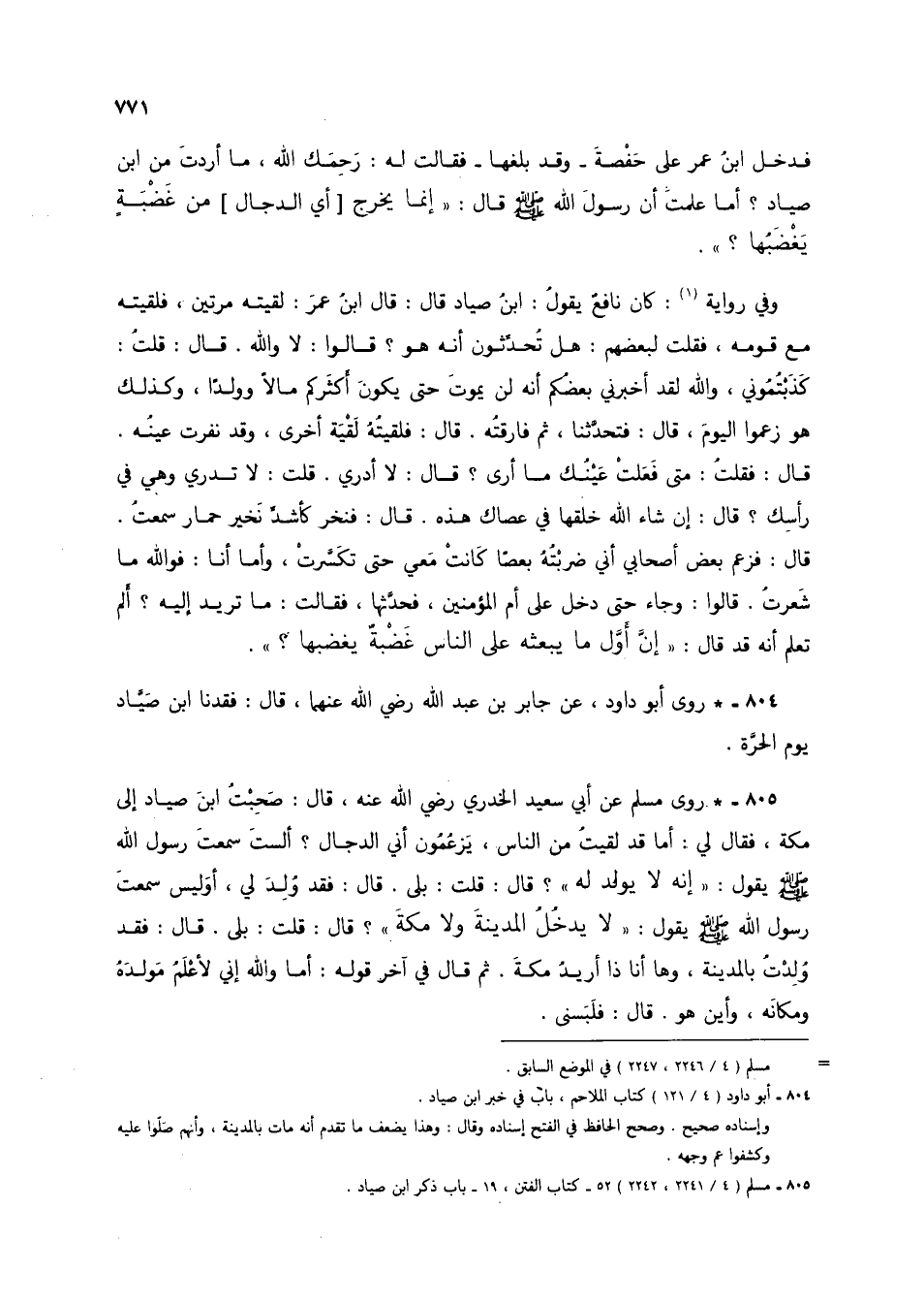 805 - مسلم (4/ 2241، 2242) 52 - كتاب الفتن، 19 - باب ذكر ابن صياد.