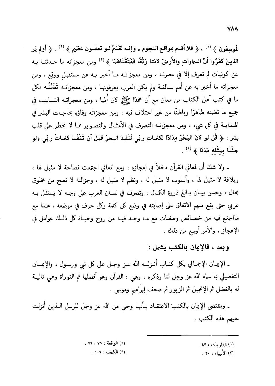 - الإيمان الإجمالي بكل كتاب أنزله الله عز وجل على كل نبي ورسول، والإيمان التفصيلي بما سماه الله عز وجل لنا وذكره، وهي: القرآن وهو أفضلها ثم التوراة وهي تالية له بالفضل ثم الإنجيل ثم الزبور ثم صحف إبراهيم وموسى.