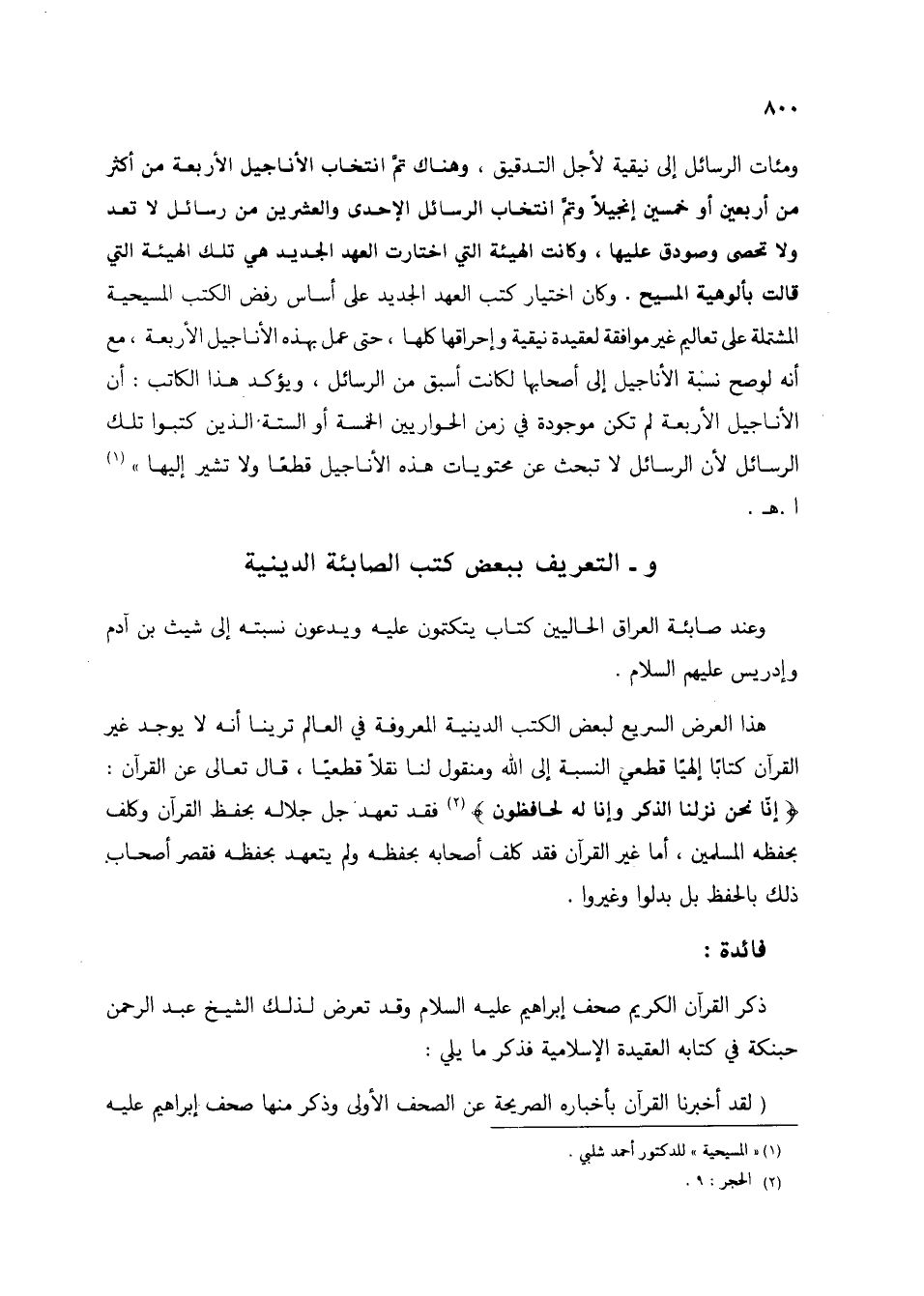 (لقد أخبرنا القرآن بأخباره الصريحة عن الصحف الأولى وذكر منها صحف إبراهم عليه