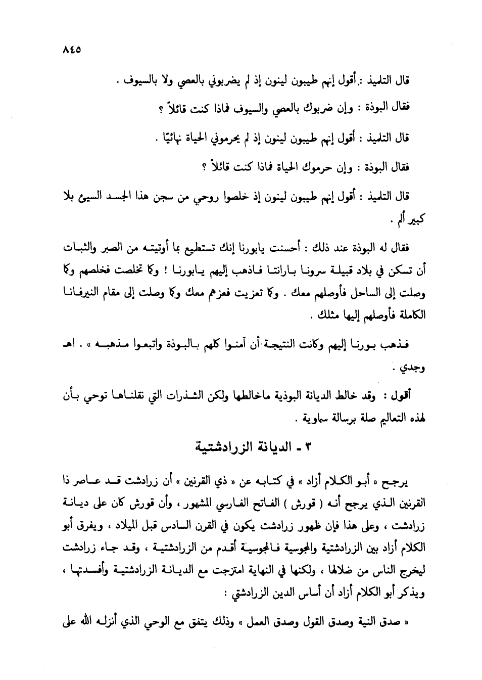 أقول: وقد خالط الديانة البوذية ما خالطها ولكن الشذرات التي نقلناها توحي بأن لهذه التعاليم صلة برسالة سماوية.