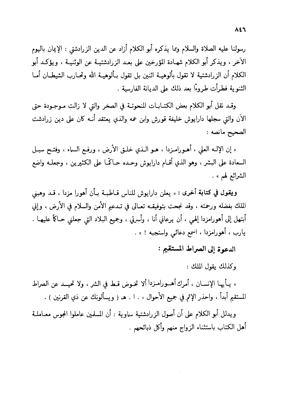 (يأيها الإنسان، أمرك أهو رامزدا ألا تخوض قط في الشر، ولا تحيد عن الصراط المستقيم أبداً، واحذر الإثم في جميع الأحوال) ا. هـ. (ويسألونك عن ذي القرنين).