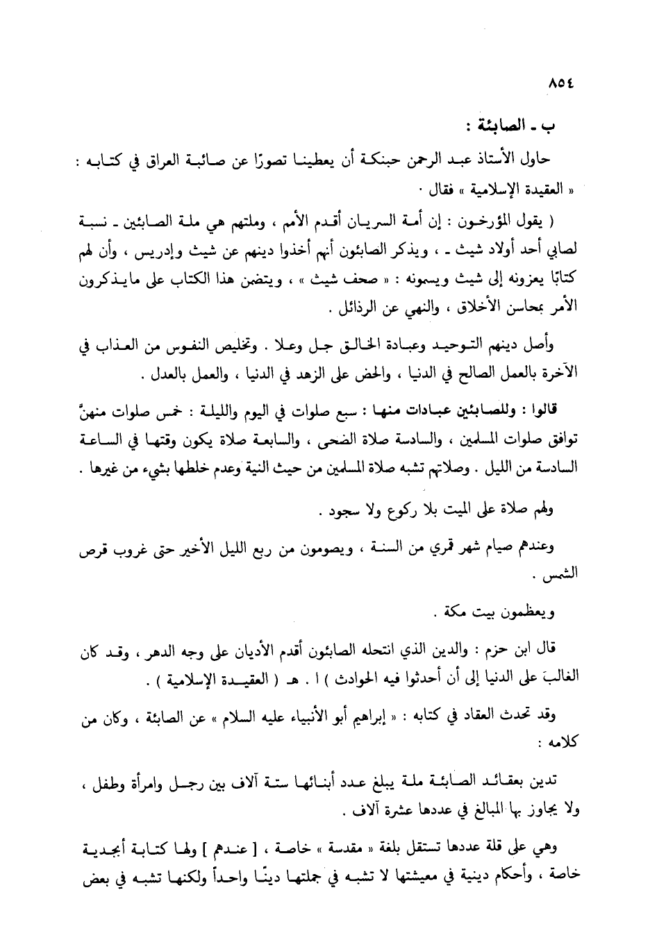 حاول الأستاذ عبد الرحمن حبنكة أن يعطينا تصورًا عن صائبة العراق في كتابه: (العقيدة الإسلامية) فقال.