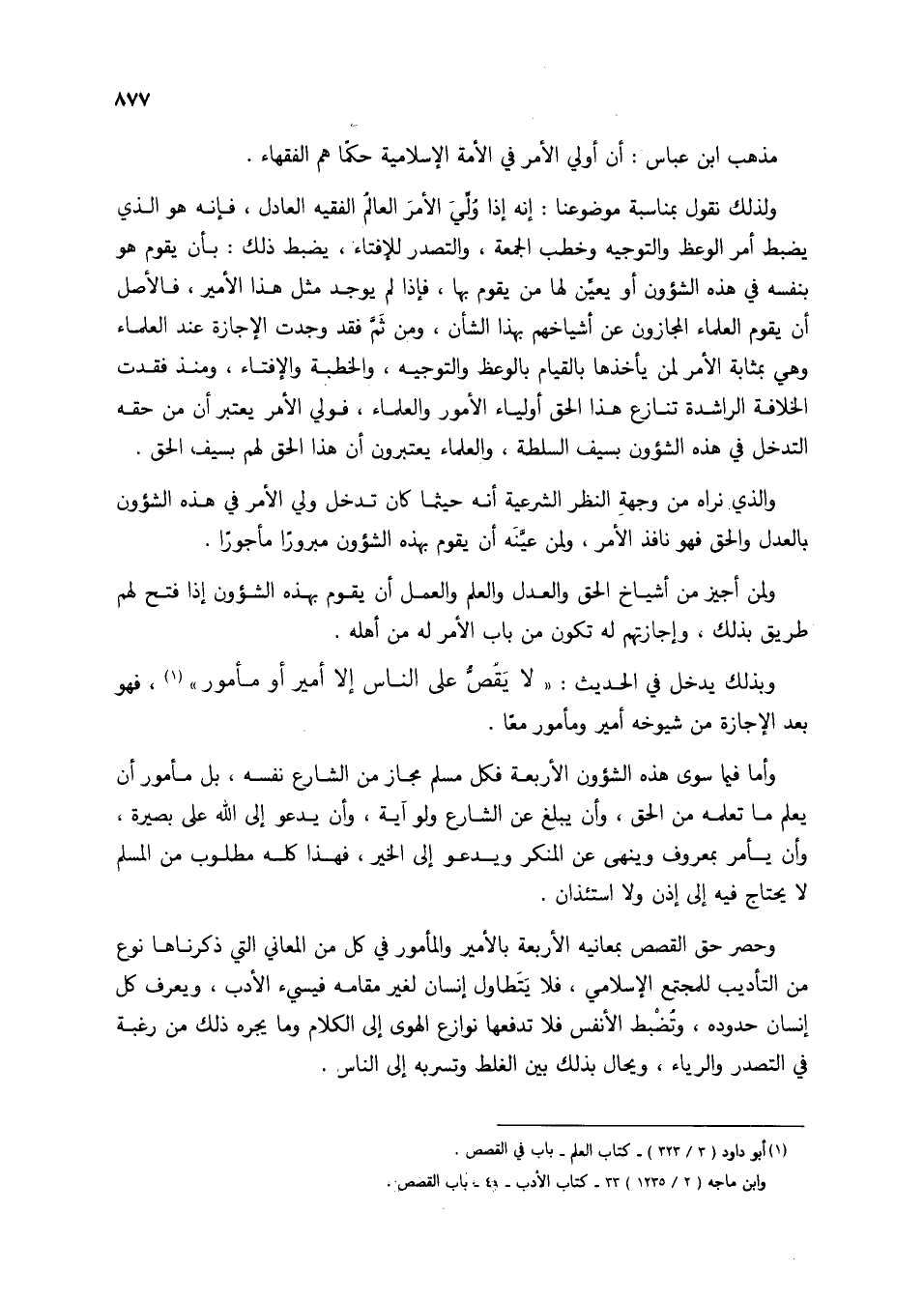 مذهب ابن عباس: أن أولي الأمر في الأمة الإسلامية حكما هم الفقهاء.
