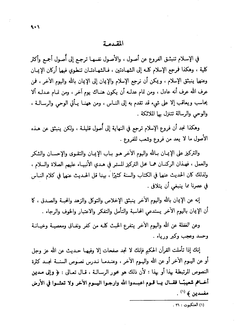 إنك إذا تأملت القرآن الحكيم فإنك لا تجد صفحات إلا وفيها حديث عن الله عز وجل أو عن اليوم الآخر أو عن الله واليوم الآخر، وعندما ندرس نصوص السنة نجد كثرة النصوص المترتبطة بهذا أو بهذا؛ لأن ذلك هو محور الرسالة، قال تعالى: {وَإِلَى مَدْيَنَ أَخَاهُمْ شُعَيْبًا فَقَالَ يَاقَوْمِ اعْبُدُوا اللَّهَ وَارْجُوا الْيَوْمَ الْآخِرَ وَلَا تَعْثَوْا فِي الْأَرْضِ مُفْسِدِينَ} (1).