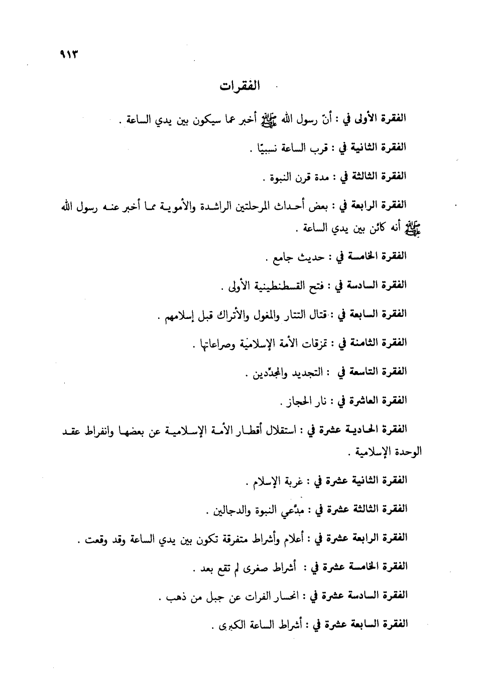 الفقرة الأولى في: أنَّ رسول الله صلى الله عليه وسلَّم أخبر عما سيكون بين يدي الساعة.