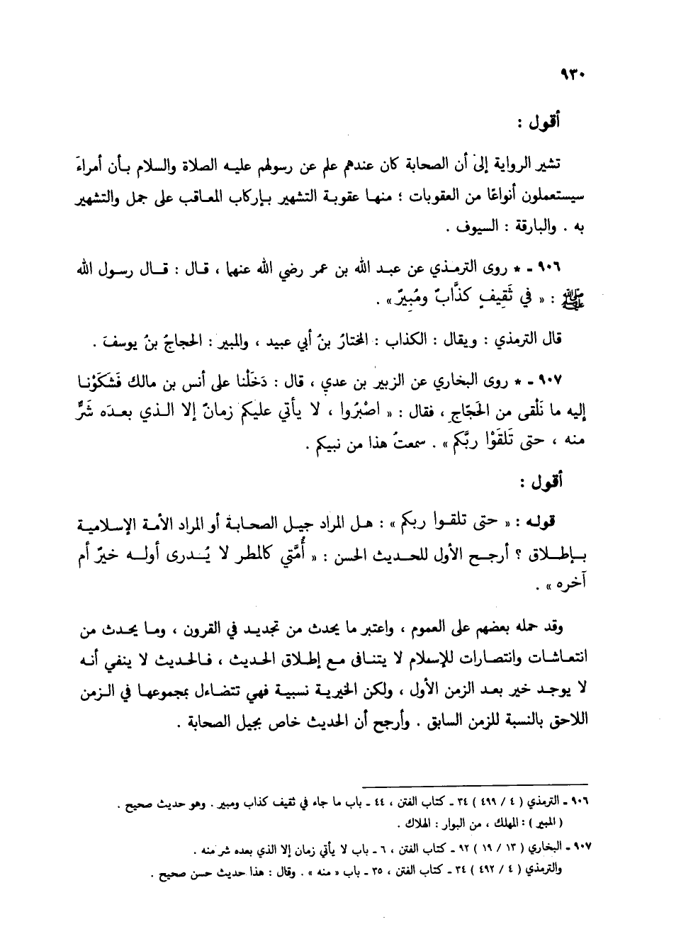 907 - البخاري (13/ 19) 92 - كتاب الفتن، 6 - باب لا يأتي إلا بعده شر منه.