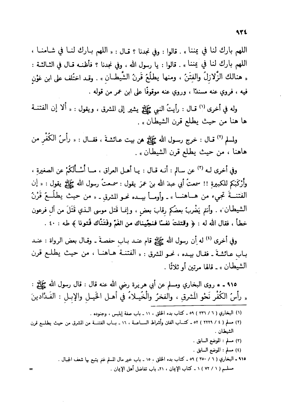 (2) مسلم (4/ 2229) 52 - كتاب الفتن وأشراط الساعة، 16 - باب الفتنة من المشرق من حيث يطلع قرن الشيطان