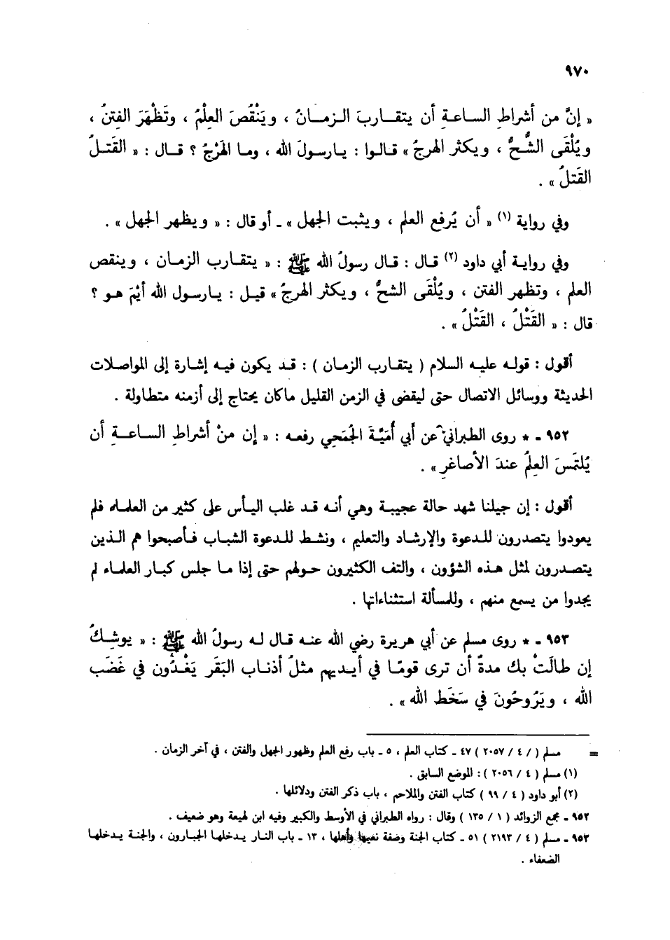 أقول: قوله عليه السلام (يتقارب الزمان): قد يكون فيه إشارة إلى المواصلات الحديثة ووسائل الاتصال حتى ليقضى في الزمان القليل ما كان يحتاج إلى أزمنة متطاولة.