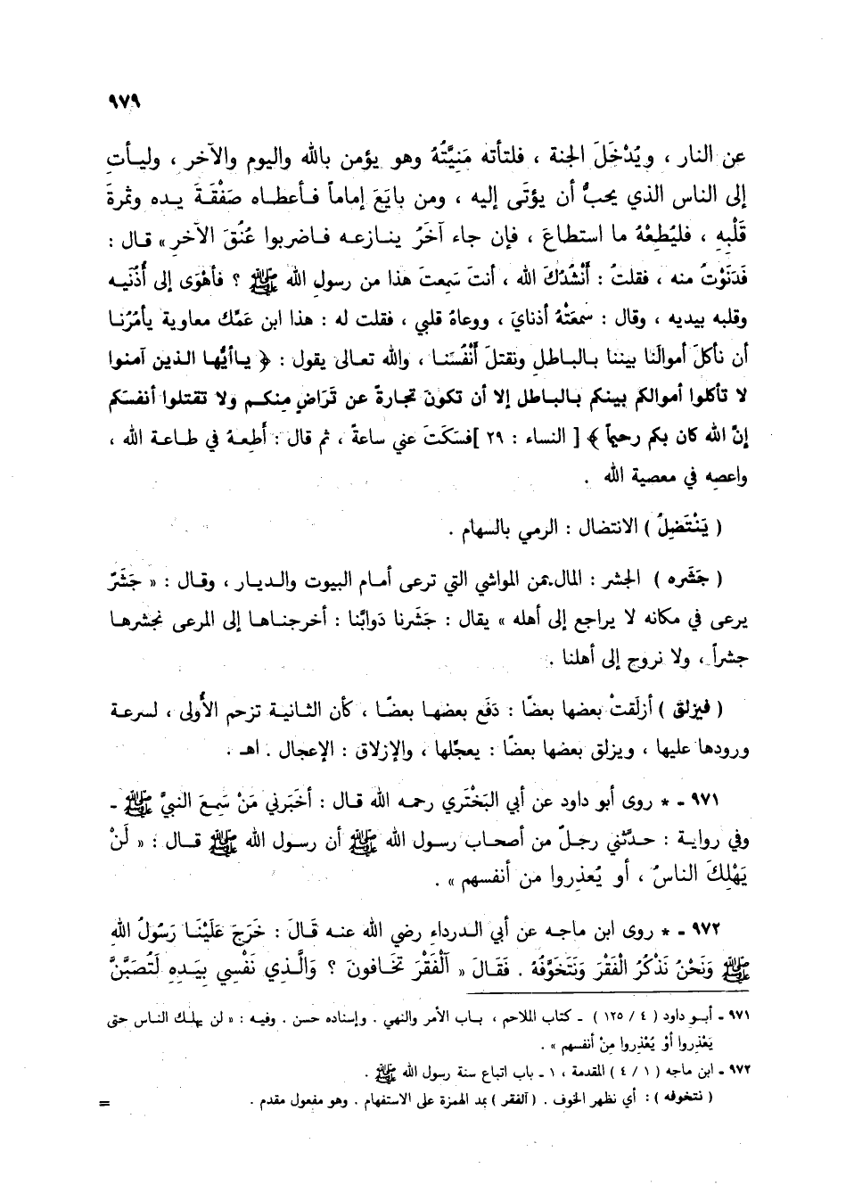 972 - * روى ابن ماجه عن أبي الدرداء رضي الله عنه قال: خرج علينا رسول الله صلى الله عليه وسلم ونحن نذكر الفقر ونتخوفه. فقال "الفقر تخافون؟ والذي نفسي بيده لتصبن