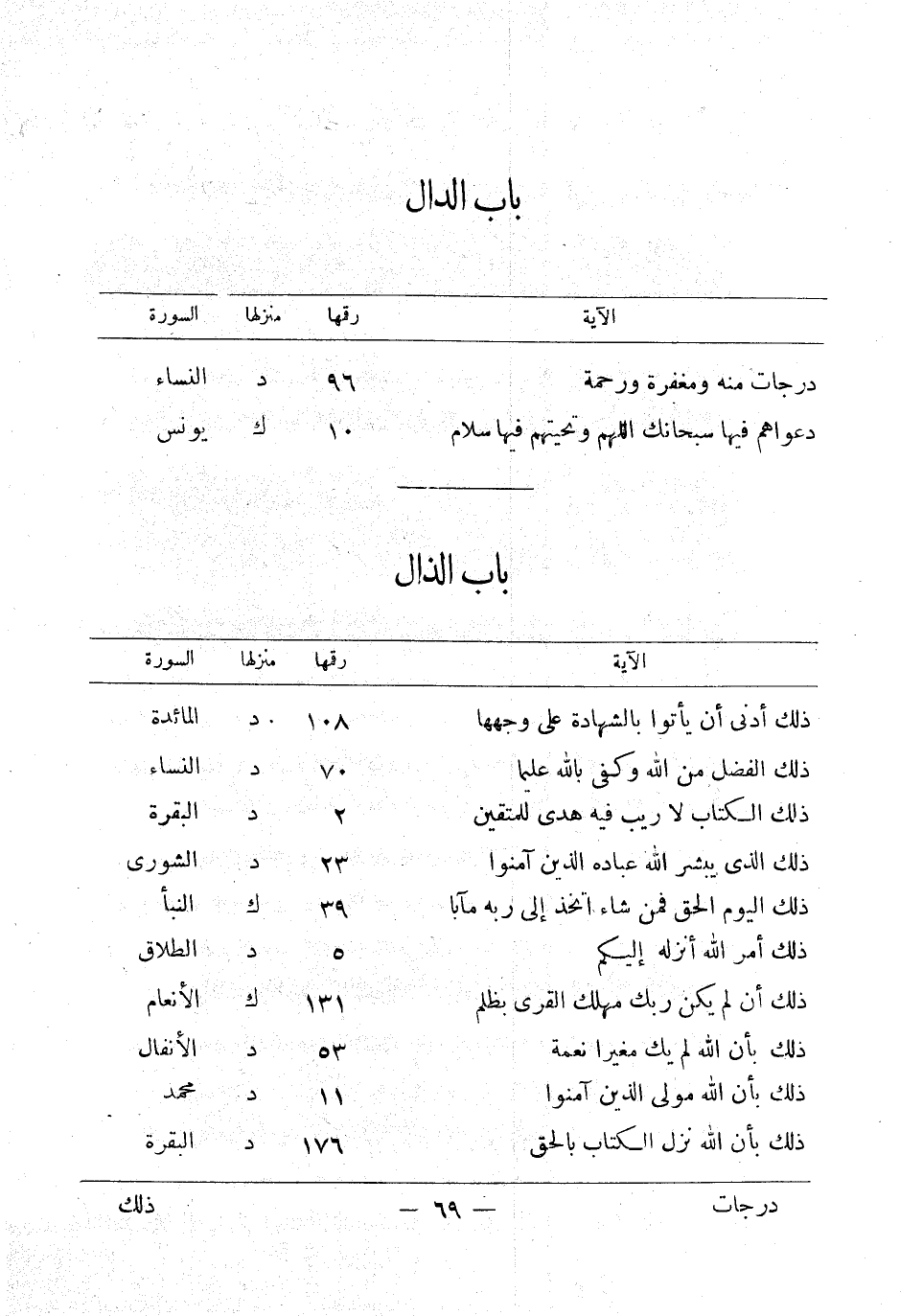 باب الدال درجات منه ومغفرة ورحمة 96 د النساء دعواهم فيها سبحانك اللهم وتحيتهم فيها سلام 10 ك يونس دحورا ولهم عذاب واصب 9 ك الصافات