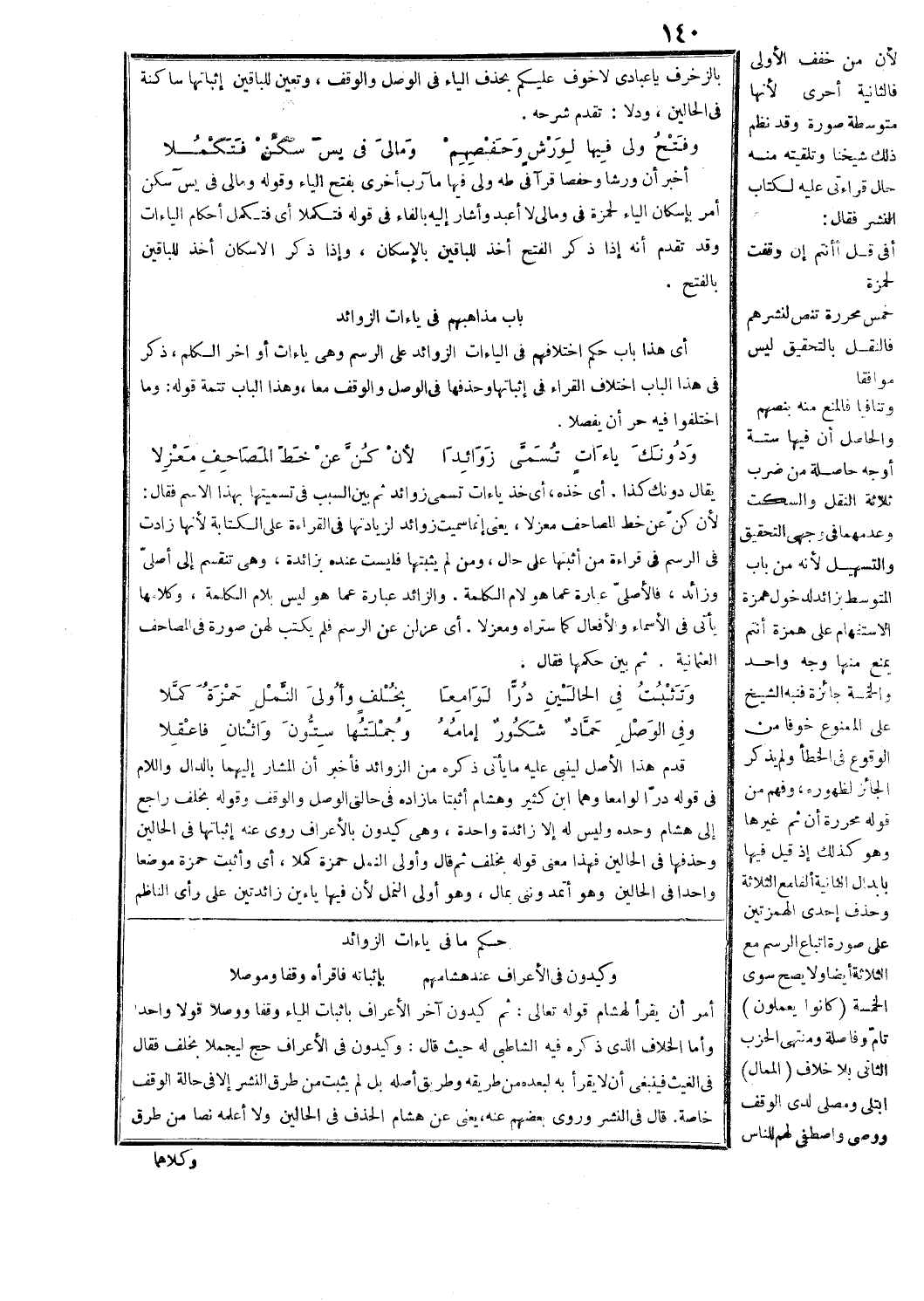 ودونك ياءات تسمّى زوائدا ... لأن كنّ عن خطّ المصاحف معزلا