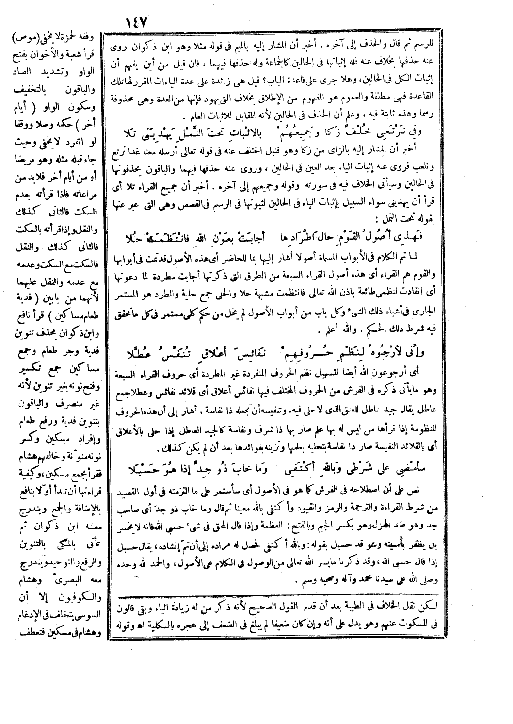 أخبر أن المشار إليه بالزاي من زكا وهو قنبل اختلف عنه في قوله تعالى: (أرسله معنا غدا نرتع ونلعب) [يوسف: 12]، فروي عنه إثبات الياء بعد العين في الحالين، وروي عنه حذفها فيهما والباقون يحذفونها في الحالين وسيأتي الخلاف فيه في سورته وقوله وجميعهم إلى آخره. أخبر أن جميع القراء تلا أي قرأ أن يهديني سواء السبيل بإثبات الياء في الحالين لثبوتها في الرسم في القصص وهي التي عبر عنها بقوله تحت النمل: