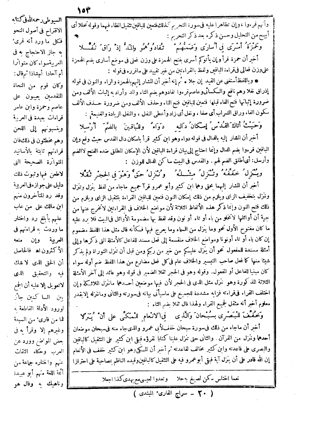 «وباللفظ استغنى عن القيد إن جلا»، ثم إنه أخبر أن المشار إليهم بالهمزة والراء والنون في قوله إذ راق نفلا وهم نافع والكسائي وعاصم قرءوا تفادوهم بضم التاء والمد وأراد به إثبات الألف ومن ضرورة إثباتها فتح الفاء قبلها فتعين للباقين فتح التاء وحذف الألف ومن ضرورة حذف الألف سكون الفاء وراق الشراب أي صفا، ونفل أي زاد وأعطى النفل، والنفل الزيادة والغنيمة: