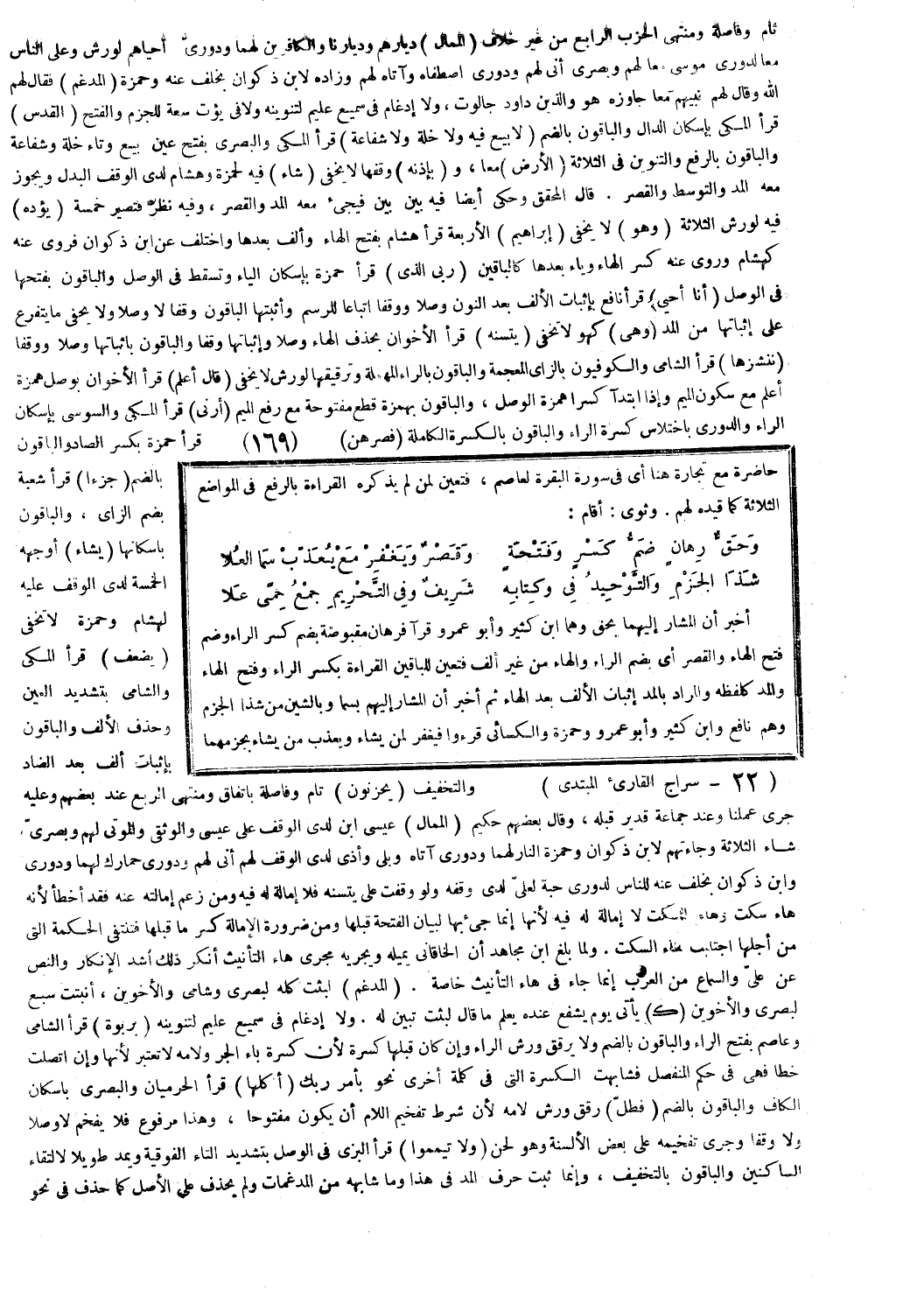 283] بضم كسر الراء وضم فتح الهاء والقصر أي بضم الراء والهاء من غير ألف فتعين للباقين القراءة بكسر الراء وفتح الهاء والمد كلفظه والمراد بالمد إثبات الألف بعد الهاء ثم أخبر أن المشار إليهم بسما وبالشين من شذا الجزم وهم نافع وابن كثير وأبو عمرو وحمزة والكسائي قرءوا فَيَغْفِرُ لِمَنْ يَشاءُ وَيُعَذِّبُ مَنْ يَشاءُ [البقرة: 284] بجزمهما
