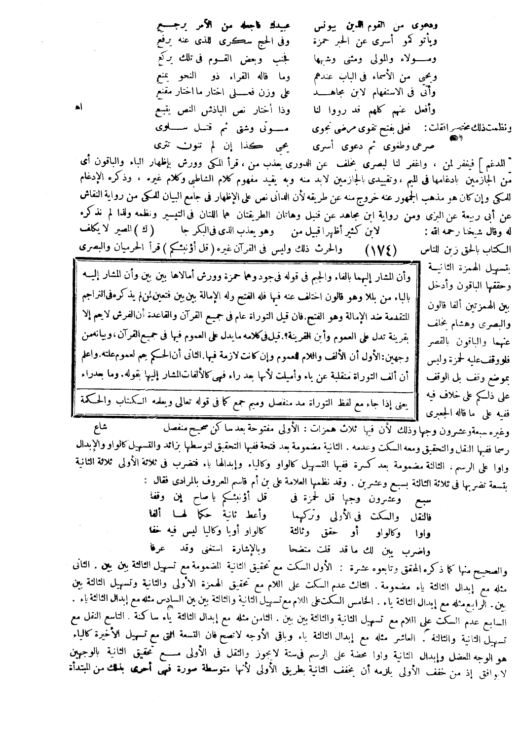 الإمالة بين بين فتعين لمن لم يذكره في التراجم المتقدمة ضد الإمالة وهو الفتح. فإن قيل التوراة عام في جميع القرآن والقاعدة أن الفرش لا يعم إلا بقرينة تدل على العموم وأين القرينة؟ قيل في كلامه ما يدل على العموم فيها في جميع القرآن، وبيانه من وجهين: الأول أن الألف واللام للعموم وإن كانت لازمة فيها. الثاني أن الحكم يعم لعموم علته. واعلم أن ألف التوراة منقلبة عن ياء وأميلت لأنها بعد راء فهي كالألفات المشار إليها بقوله. وما بعد راء