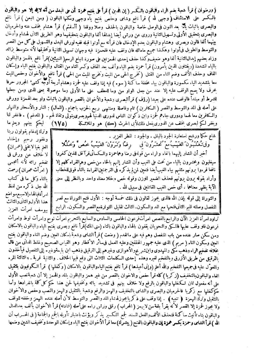 أخبر أن المشار إليهما بالفاء والراء من قوله في رضا وهما حمزة والكسائي قرآ (قل للذين كفروا سيغلبون ويحشرون) [آل عمران: 12] بالياء من تحت على الغيب وأن المشار إليهم بالخاء من خص وهم القراء كلهم إلا نافعا قرءوا يرونهم مثليهم بياء الغيب أيضا فتعين لمن لم يذكره في الترجمتين القراءة وبالتاء فوق للخطاب وأراد بقوله يرون يرونهم فحذف الضمير للوزن وقوله خص وخللا معناه واحد وبالنظر إلى معنى الآية يظهر معناهما، أي خص الغيب المقاتلين في سبيل الله.