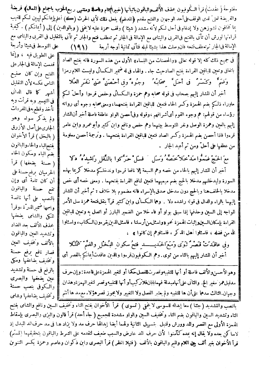 في جميع ذلك كله إلا قوله تعالى: وَالْمُحْصَناتُ مِنَ النِّساءِ، الأول من هذه السورة فإنه بفتح الصاد باتفاق وتعين للباقين القراءة بفتح الصاد حيث جاء. والهاء في له ضمير الكسائي وليست اللام رمزا.