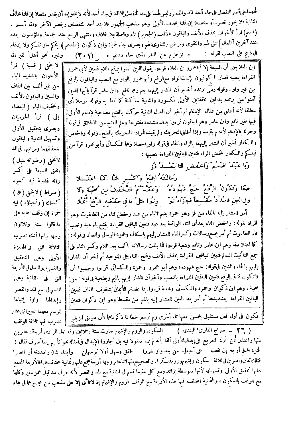 الأولى فيها لغير نافع وابن عامر وهم الباقون قرءوا بدال مشددة مفتوحة وعلم الفتح من الإطلاق في قوله وحرك بالإدغام لأنه لم يقيده وإذا أطلق التحريك ولم يقيده فمراده التحريك بالفتح. وقوله وبالخفض والكفار أخبر أن المشار إليهما بالراء والحاء في قوله راويه حصلا وهما الكسائي وأبو عمرو قرآ من قبلكم والكفار بخفض الراء فتعين للباقين القراءة بنصبها: