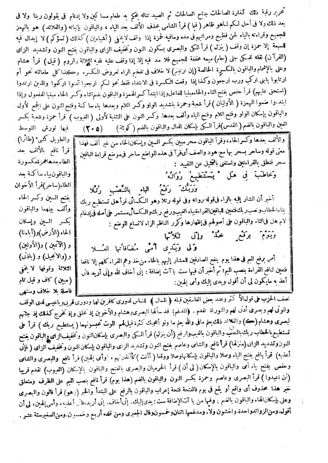 والألف بعدها وكسر الحاء، وقرأ الباقون سحر مبين بكسر السين وإسكان الحاء من غير ألف فهذا معنى قوله وساحر بسحر بها مع هود والصف أي قرآ في هذه المواضع ساحر في موضع قراءة الباقين سحر فنطق بالقراءتين واستغنى بالتمثيل عن التقييد: