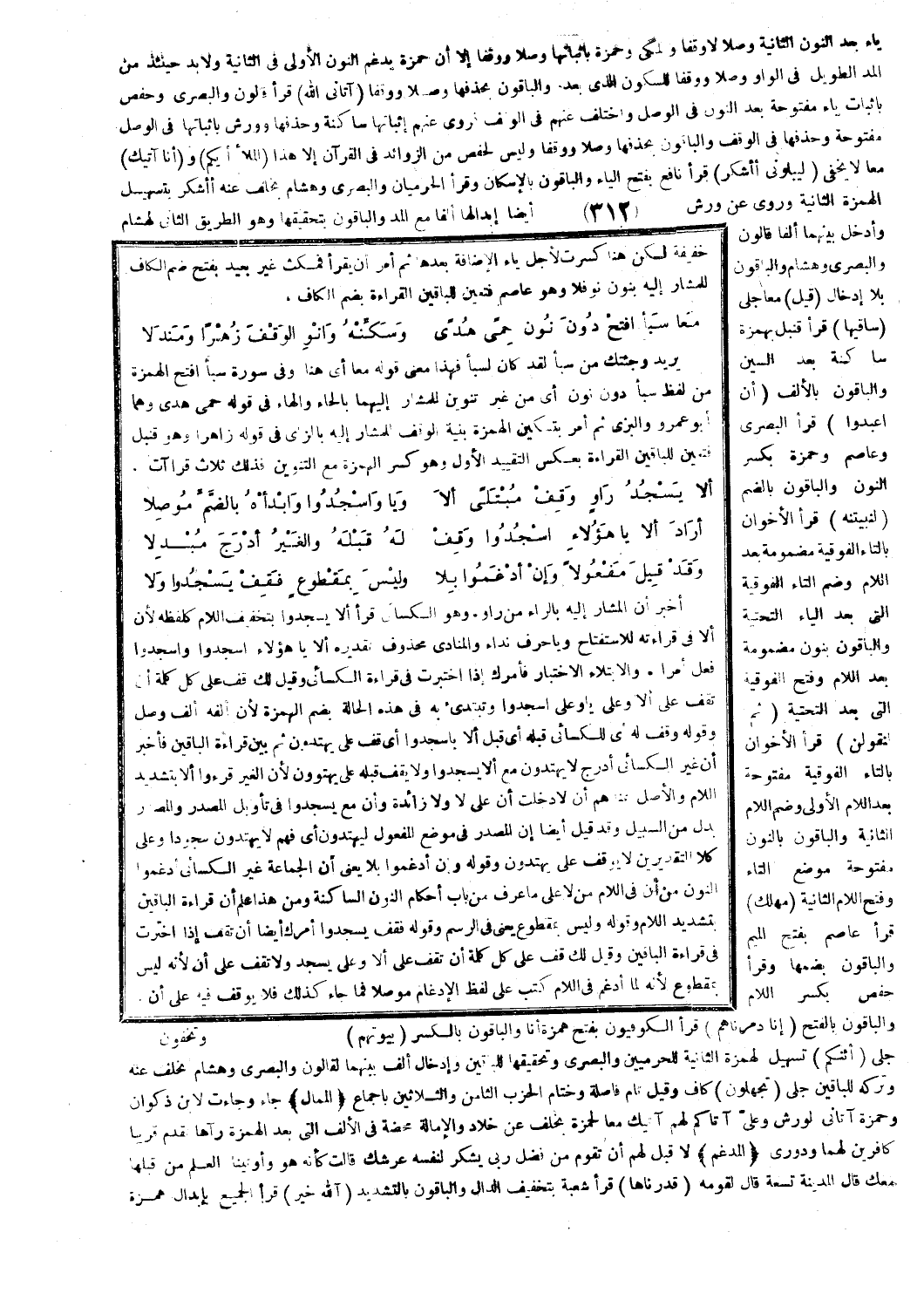 والمصدر بدل من السبيل وقد قيل أيضا إن المصدر في موضع المفعول ليهتدون أي فهم لا يهتدون سجودا وعلى كلا التقديرين لا يوقف على يهتدون وقوله وإن أدغموا بلا يعني أن الجماعة غير الكسائي أدغموا النون من أن في اللام من لا على ما عرف من باب أحكام النون الساكنة ومن هذا علم أن قراءة الباقين بتشديد اللام وقوله وليس بمقطوع يعني في الرسم وقوله فقف يسجدوا أمرك أيضا أن تقف إذا اخترت في قراءة الباقين وقيل لك قف على كل كلمة أن تقف على ألا وعلى يسجد ولا تقف على أن لأنه ليس بمقطوع لأنه لما أدغم في اللام كتب على لفظ الإدغام موصلا فما جاء كذلك فلا يوقف فيه على أن.