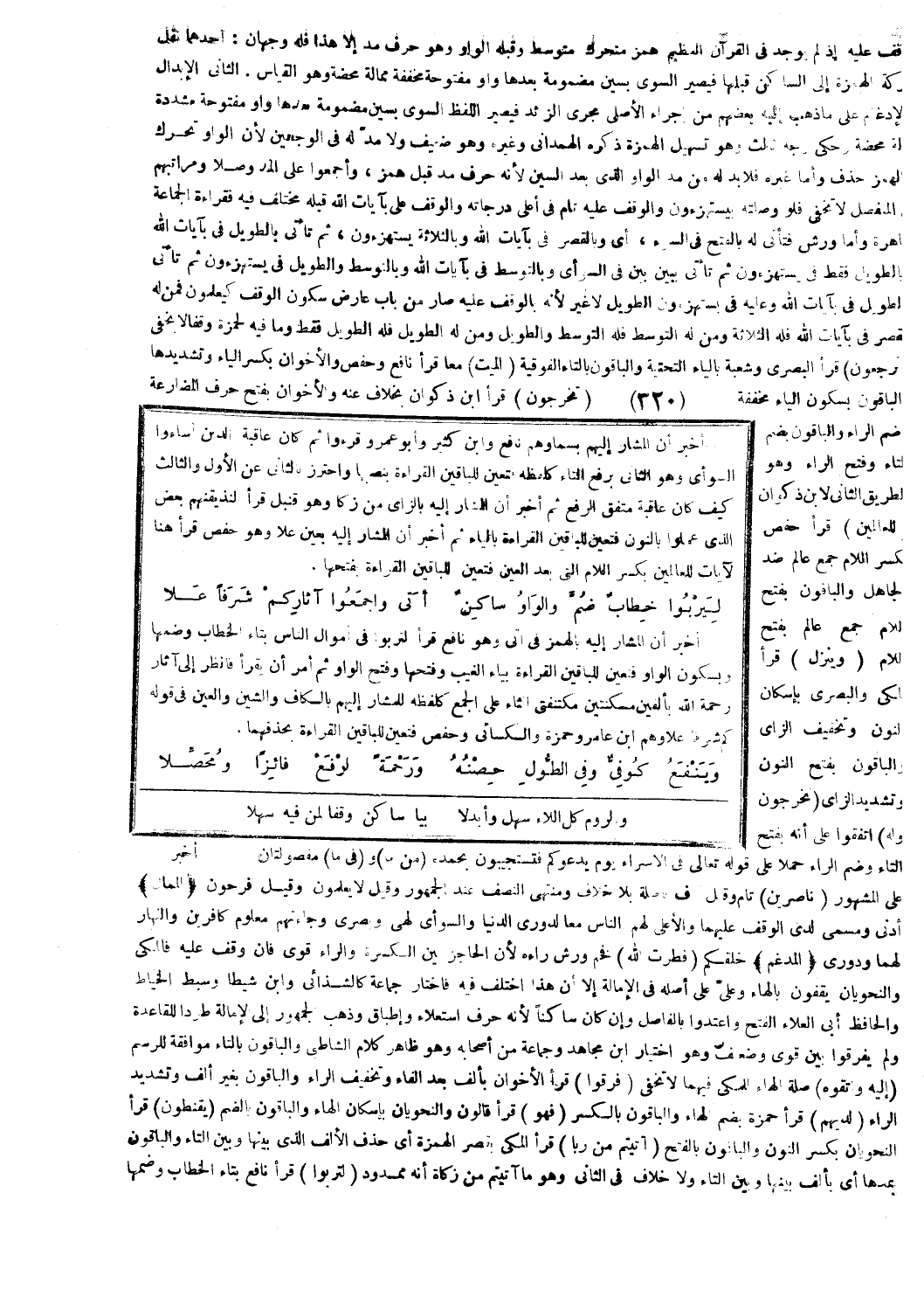 39] بتاء الخطاب وضمها وبسكون الواو فتعين للباقين القراءة بياء الغيب وفتحها وفتح الواو ثم أمر أن يقرأ (فانظر إلى آثار رحمة الله) [الروم: 50] بألفين مسكنتين مكتنفتي الثاء على الجمع كلفظه للمشار إليهم بالكاف والشين والعين في قوله: كم شرفا علا وهم ابن عامر وحمزة والكسائي وحفص فتعين للباقين للقراءة بحذفهما.